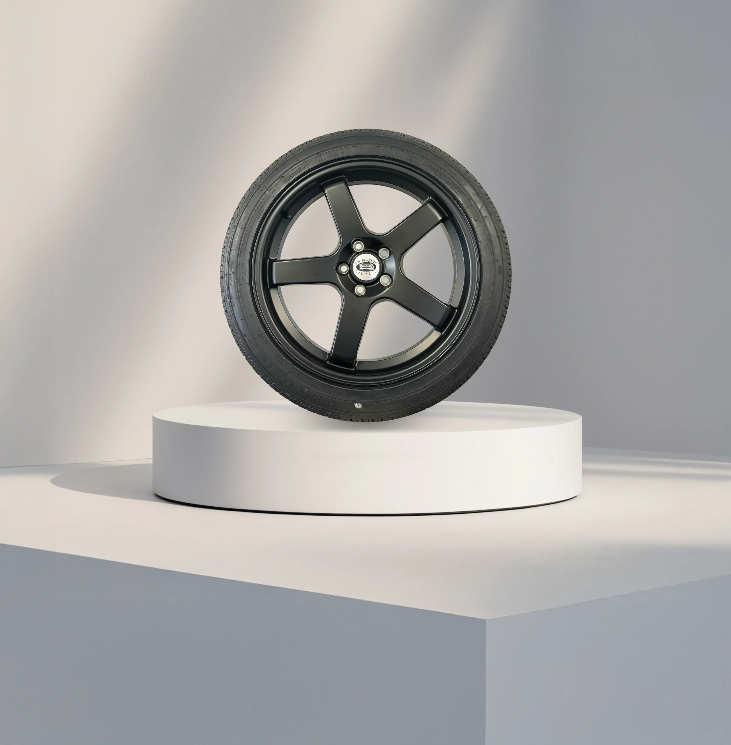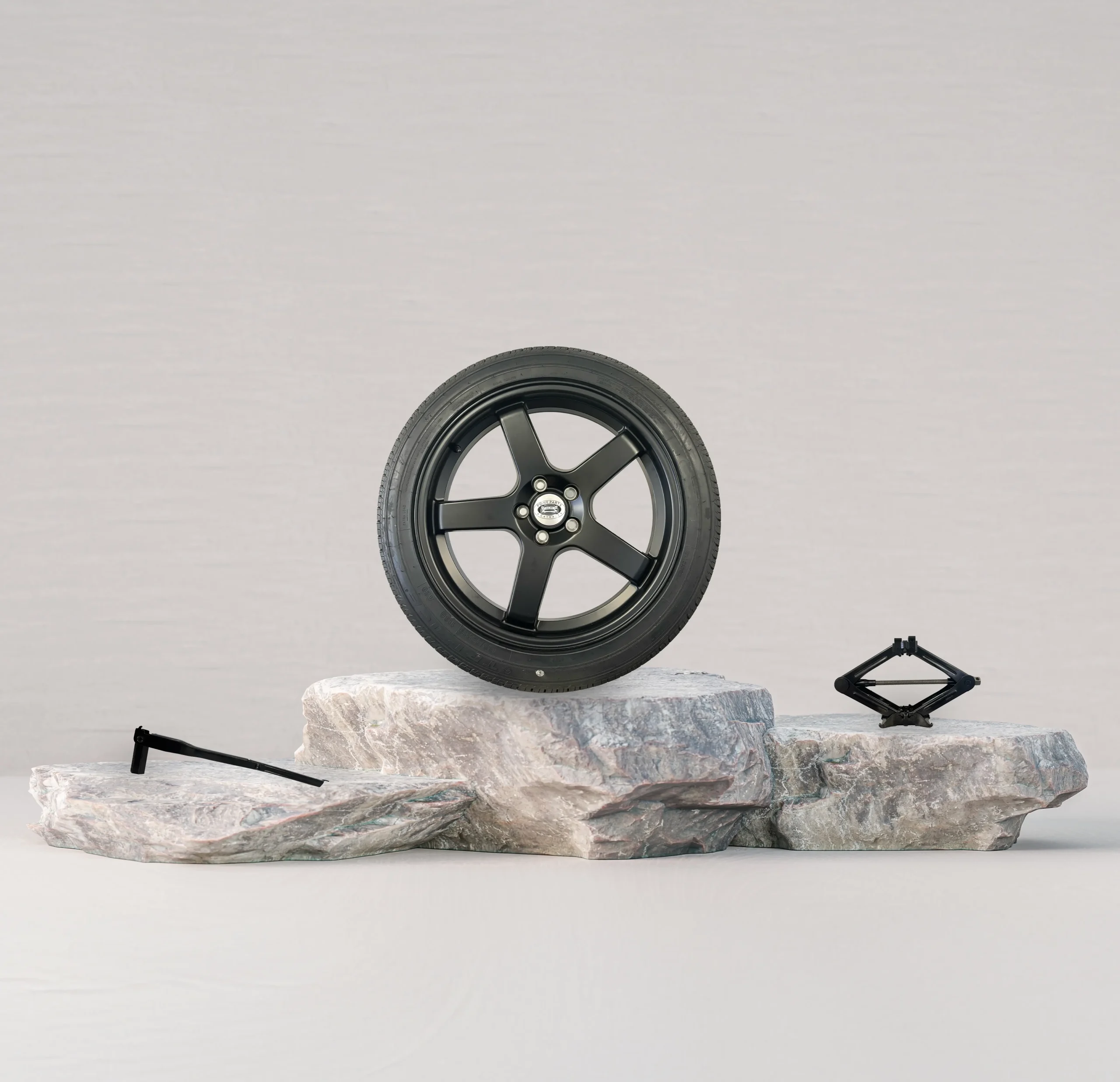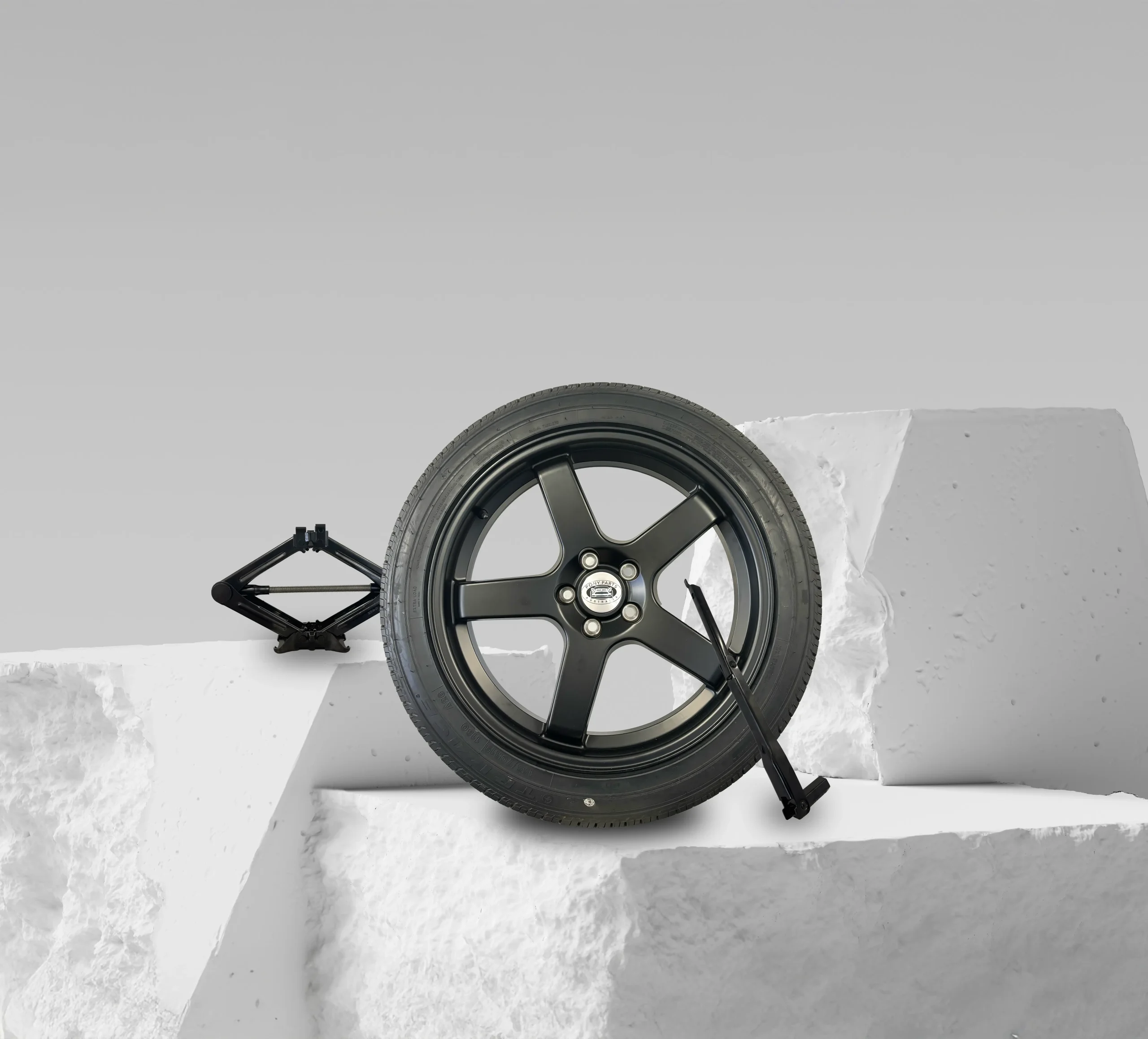 A high-performance spare wheel kit designed specifically for Mustangs from 2015 and onwards. Crafted to fit neatly in your boot, clear high performance Brembo brakes, and get you home safely and fast.